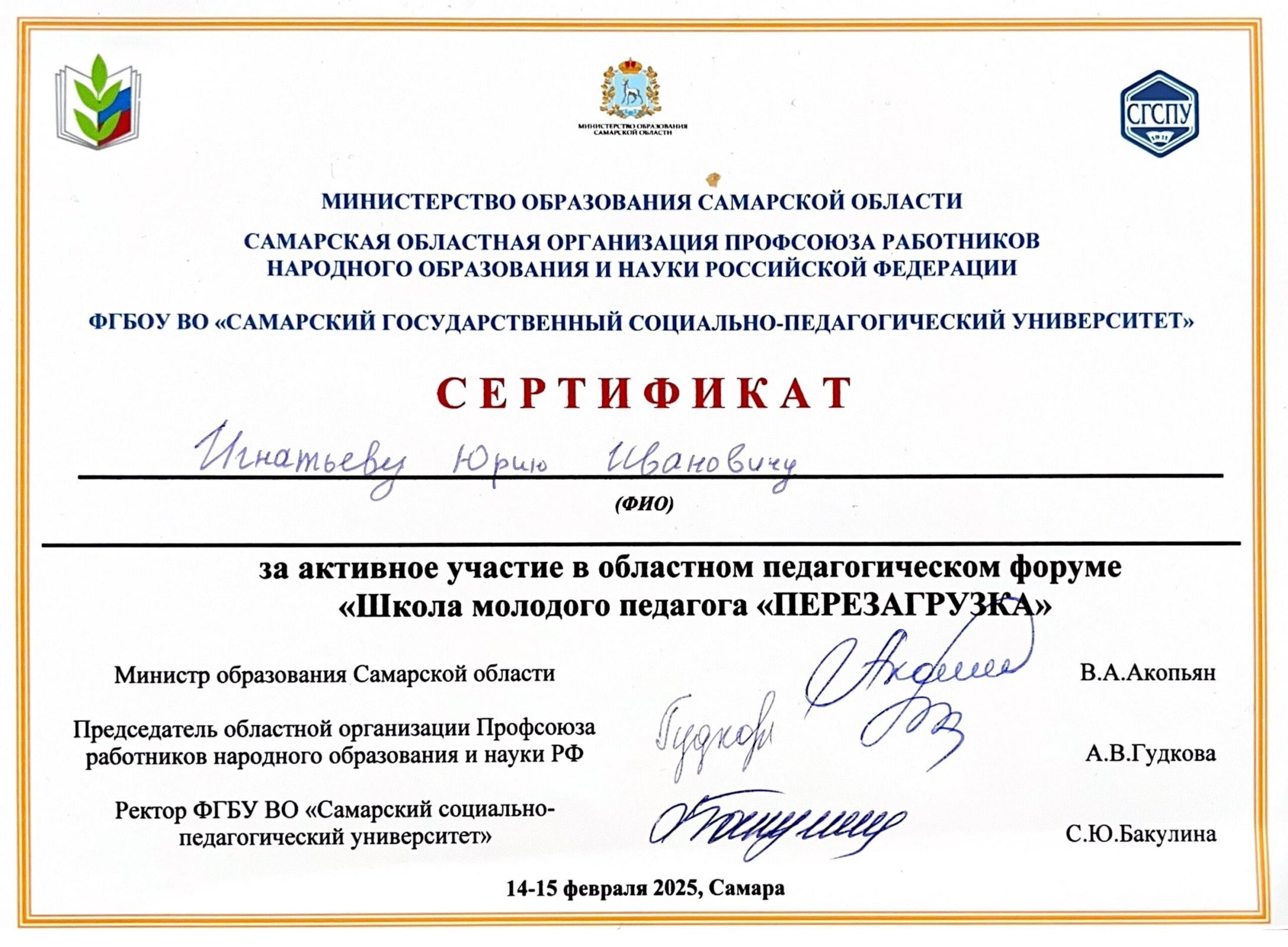 14-15 февраля учителя МБОУ «Школы №29″ г.о. Самара приняли участие в педагогическом форуме «Школа молодого педагога «ПЕРЕЗАГРУЗКА »на базе Самарского государственного социально-педагогического университета (СГСПУ)